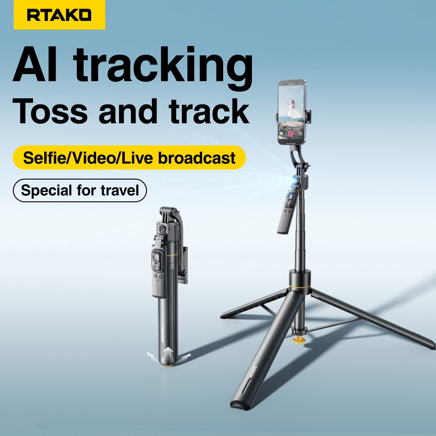 Gậy Selfie Tích Hợp Tripod RTAKO TT07 (360° AI face tracking, Douyin remote control, 170cm Extendable pole)