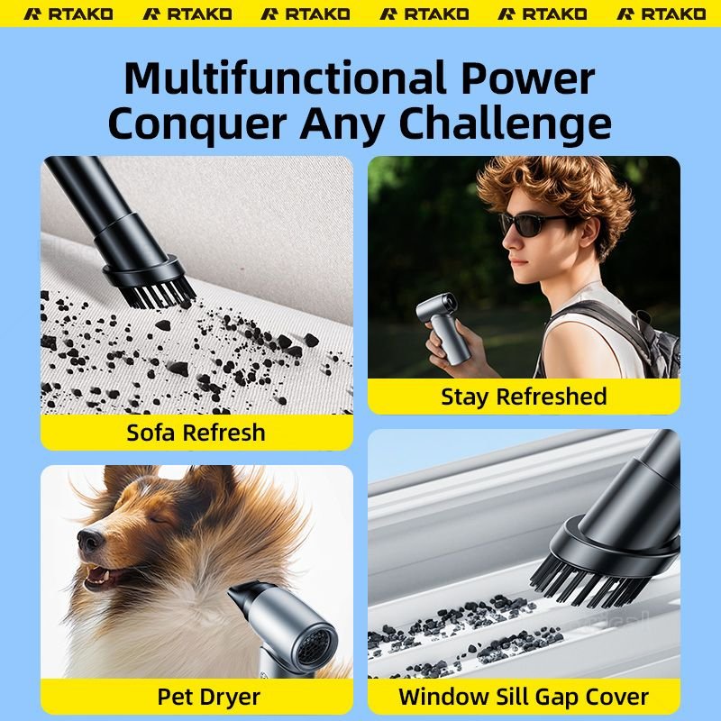 Hình Ảnh Quạt Cầm Tay Đa Năng 2-in-1 Kiêm Máy Hút Bụi RTAKO F71 (4000mAH, 90000RPM, Dual-Function)